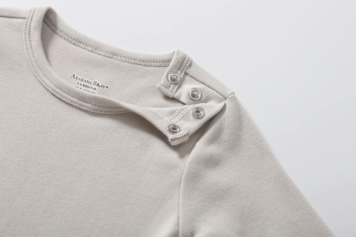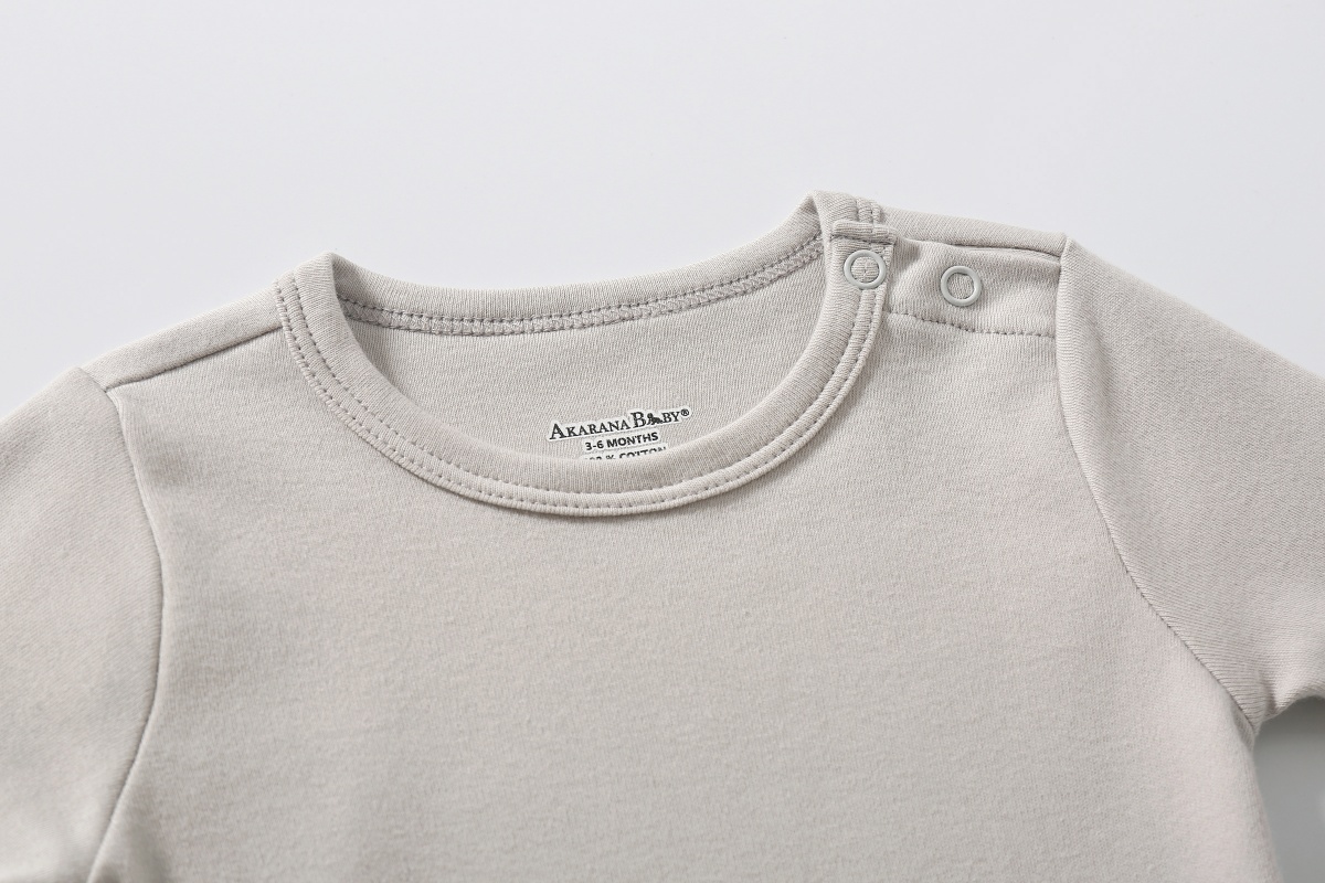 The basic long sleeve bodysuit is crafted from breathable soft double-sided 100% cotton and features a top buttons side that slips easily over little heads. Crotch dome closure for easy nappy changing. Ideals as a layering piece or a stand-alone top on warmer days.