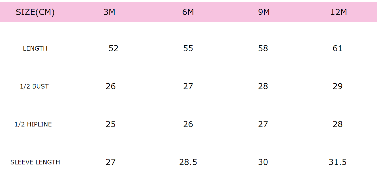 - Size: 0-3mths, 3-6mths, 6-9mths, 9-12mths