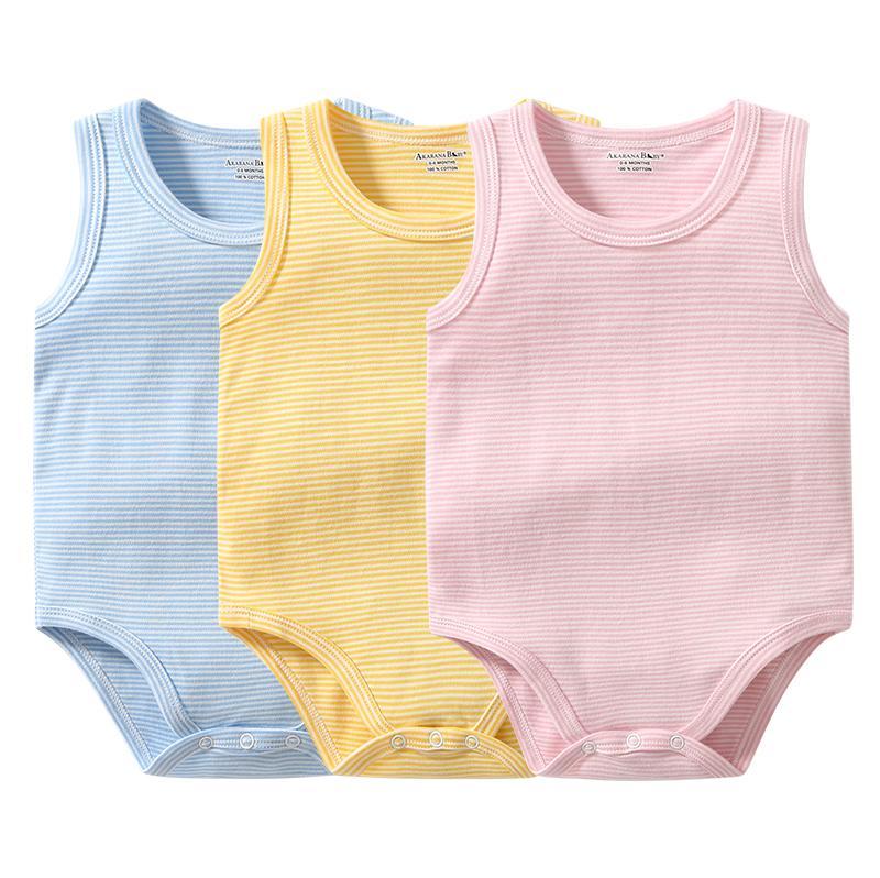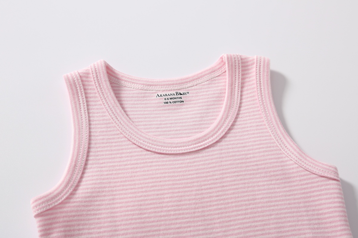 Our basic striped Baby Sleeveless Bodysuit features a round neckline that will provide comfortable dressing while the easy snap crotch closure at the bottom makes diaper changes convenient.