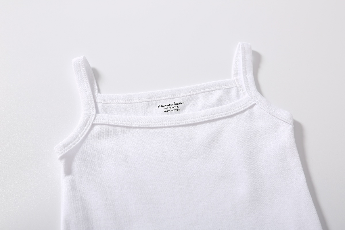 The ultra-soft Baby Spaghetti Strap Tank Bodysuit is perfect coverage under sleeveless dresses and tops. Crotch dome closure for easy nappy changing.
