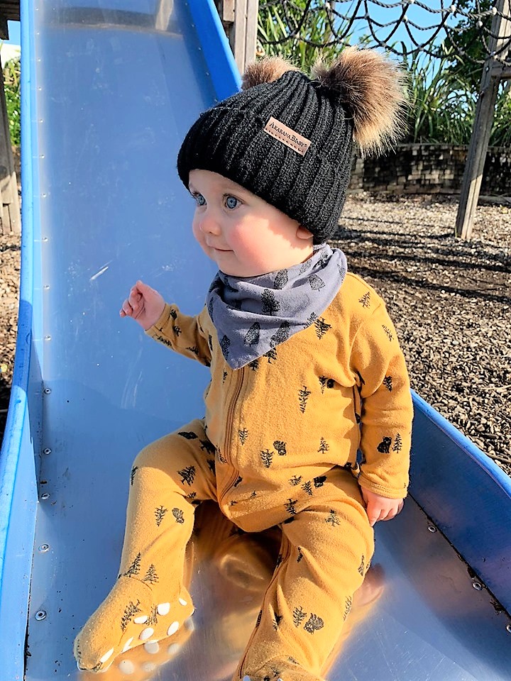 This adorable chunky knit bobble cap is guaranteed to be a crowd-pleaser.