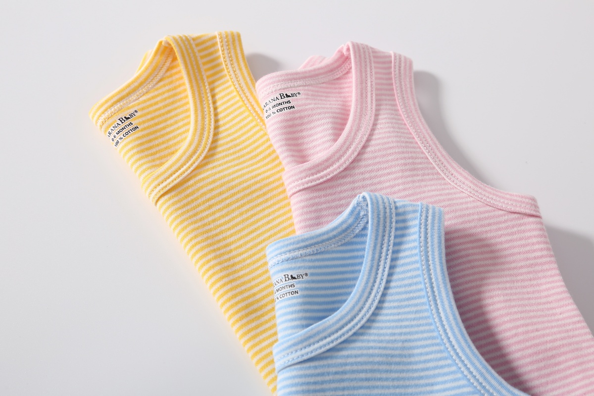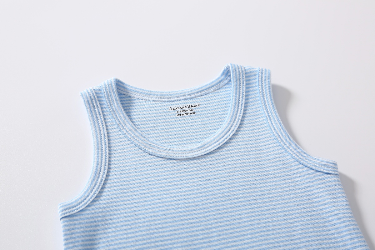Our basic striped Baby Sleeveless Bodysuit features a round neckline that will provide comfortable dressing while the easy snap crotch closure at the bottom makes diaper changes convenient.