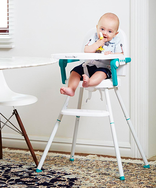 Toru Convertible Baby High Chair, a convertible baby high chair that can convert from high to low chair position and into portable booster seat. It was an ergonomically designed baby chair to offer comfortable seating and safely seat your baby at meal times.