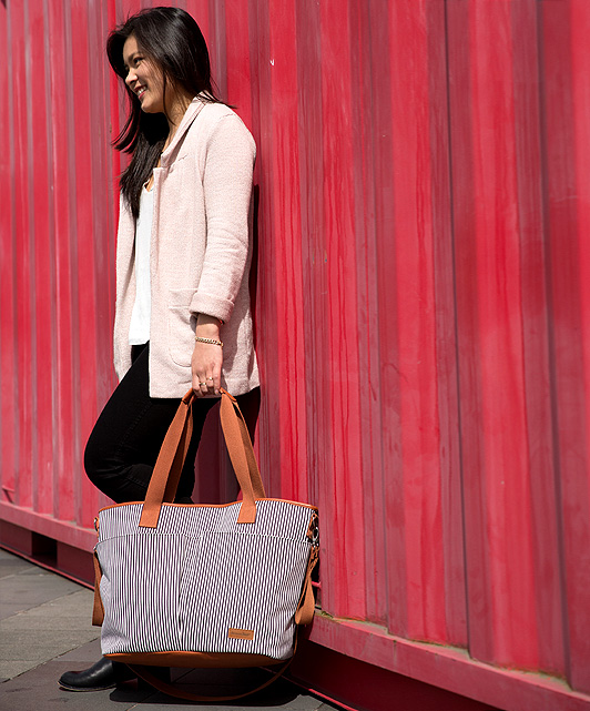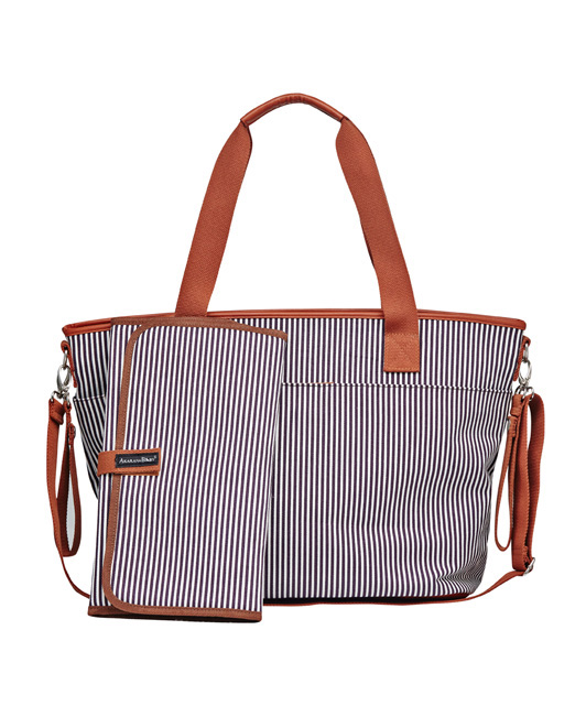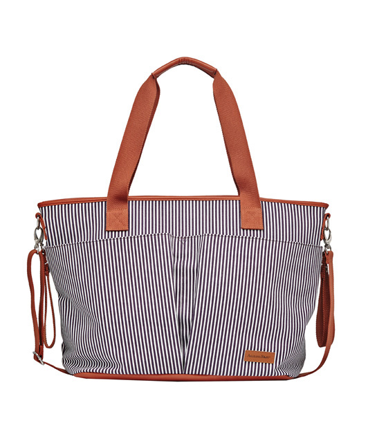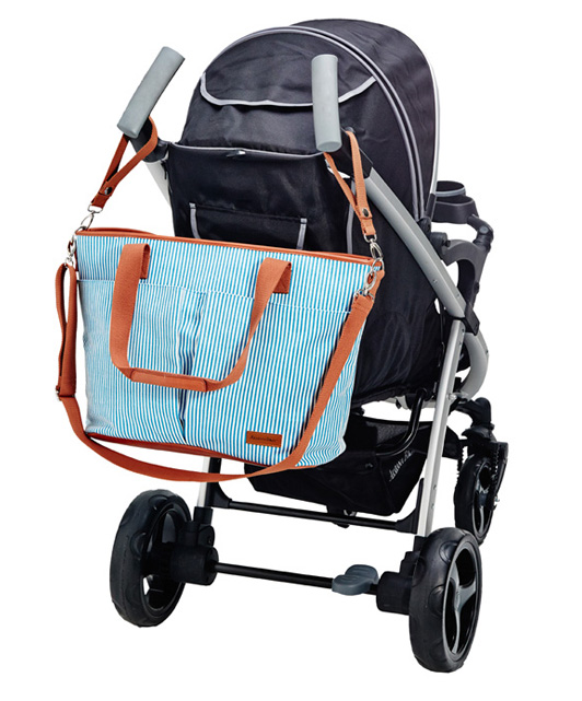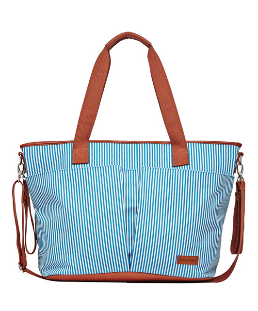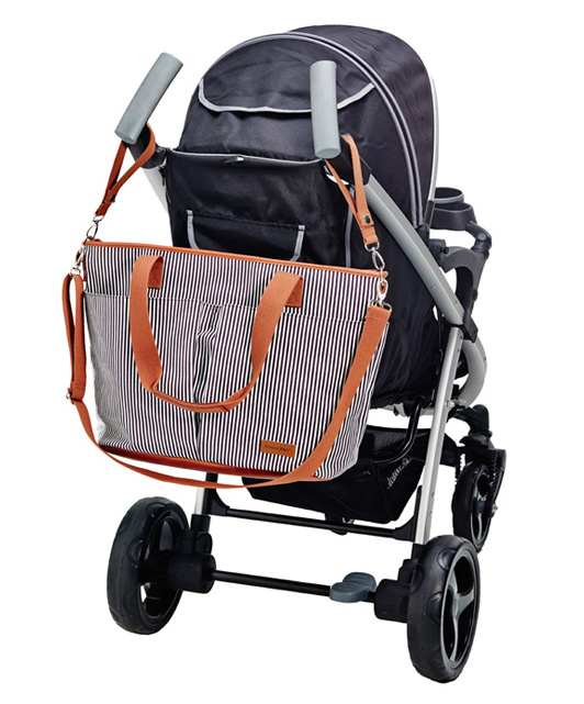 Fashionable vertical striped Tiki diaper bag can be worn over the shoulder, or across your body and is the ideal size to function as your diaper bag or as your everyday tote sling bag.